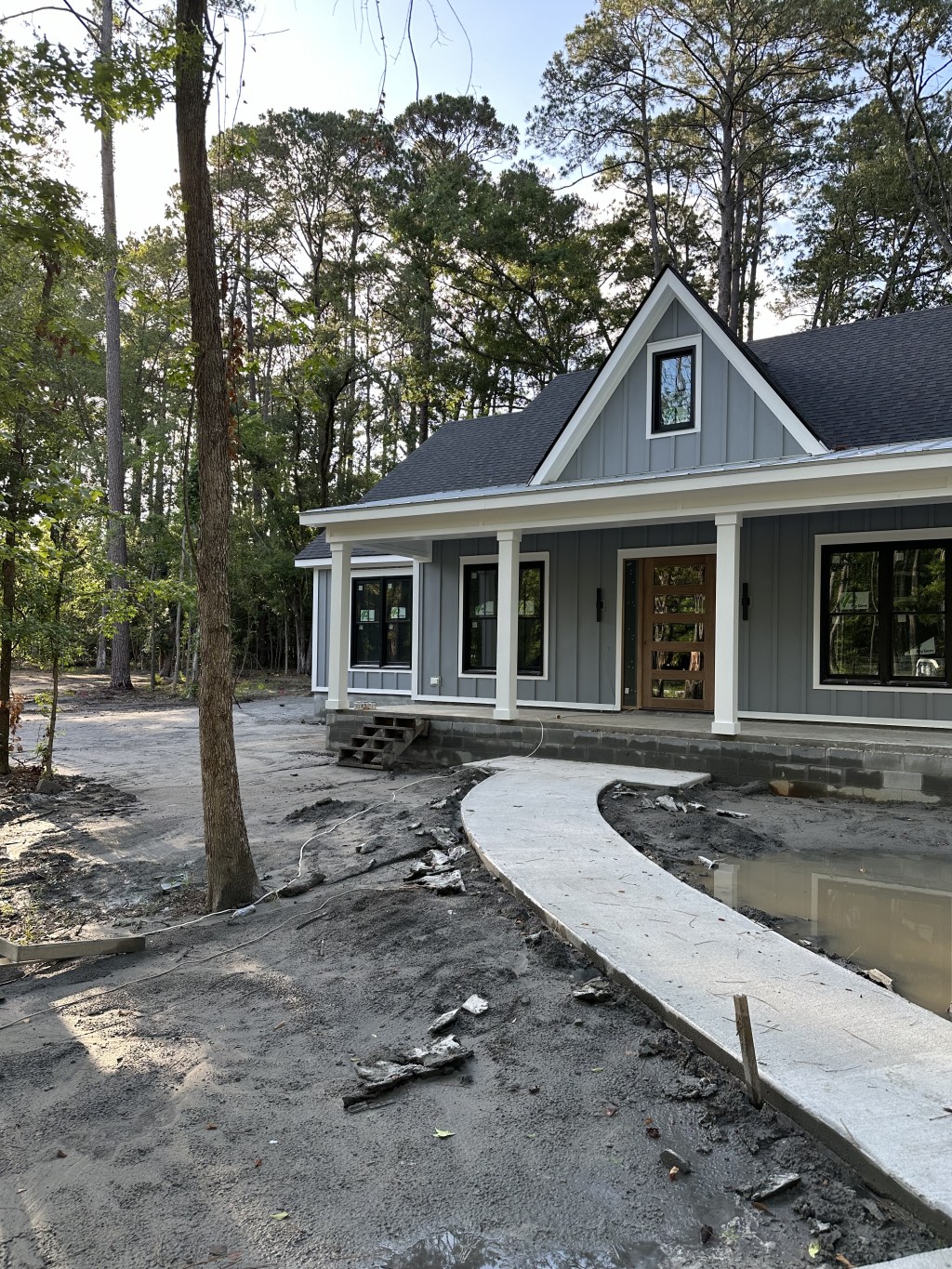 This past Saturday, May 11, 2024, was the perfect opportunity to spend the weekend in Savannah and hit Tybee Island for some beach time! Of course, we had to stop by the house to see how the exterior painting turned out. We were not prepared for how striking our house looks in the wooded setting and we are extremely pleased witht he end result! With he expansive winding driveway, it’s easy to see how landscaping will really set us apart from the other homes in the development. Our GC is on vacation until 5/21. We are expecting the cabinet boxes to be placed this week and are keeping our fingers crossed that Georgia Power also connects the main power so the HVAC can be turned on and allow for acclimation of the flooring.