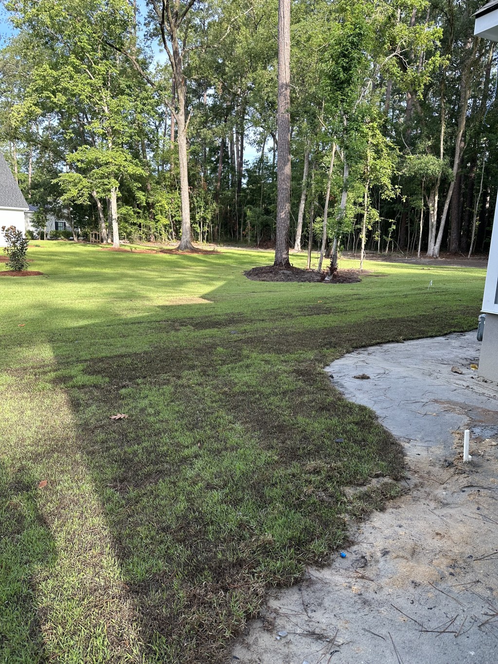 The sod is really looking good after 7 days! I was a little skeptical at first because there were some patches that were entirely brown. The sprinkler system is doing it’s job and is regularly watering the entire property in zones throughout the day. The picure above is what the yard on the side of the house looked like as of 7/4/24. A week ago, it was brown! Our contractor said that once the sod starts rooting, it would “green up”. I’m relieved to see that he was right! The sod that the landscaper installed is Empire Zoysia https://empirezoysia.com/. I’ll confess that I am completely ignorant about sod and the implications of selecting certain varieties over another. time. We were advised that freshly installed sod needs at least a month to establish itself. So it will be interesting to see what everything looks like at the end of July. Paddock fencing is going in this weekend and our Ipe wood front steps should be getting installed as well. I am in the process of looking for moving companies so the details of our move can be finalized.
