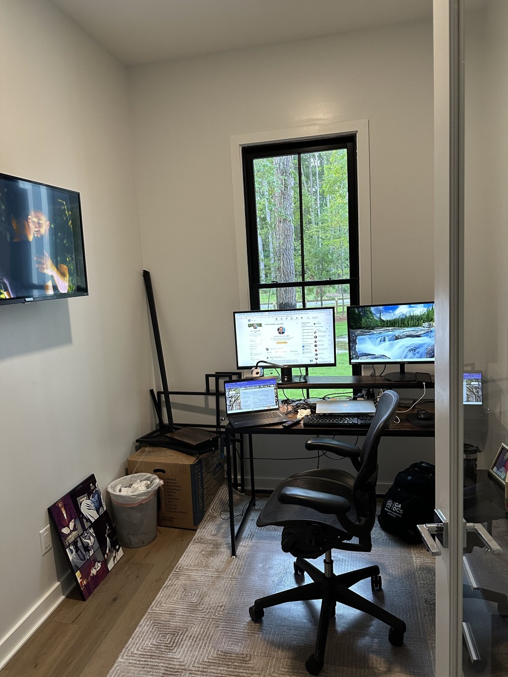 Yesterday, I finished setting up my office and was able to work comfortably there. Ken helped me mount my TV and we have a server back up and running. We hired someone to put together Ken’s desk, our bed, and guest room furniture. We’ve managed to get quite a few boxes emptied. It’s starting to feel like home to us, but we’ll be glad when our cabinets are completed and we can start fully utilizing our kitchen! Eating out is getting old!