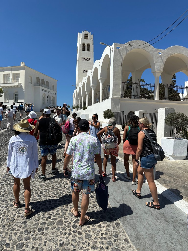 After spending a relaxing time at the beach, we had the opportunity to head back into town to explore. The pictures that you see online and in print of Santorini, put it in its best light. The reality is that with 3 other cruse ships in port, it’s incredibly crowded! Funelling through narrow streets that are crowded with tourists is not enjoyable! If I had it to do over again, I would go back off season to allow more time to explore in a liesurely manner. The heat was also something to contend with! Thankfully, our shore excursion included the cable car trip back down to the port so we didn’t have to witness the infamous Santorini donkeys. This practice is becoming more and more maligned and I think it’s just a matter of time before it’s done away with altogether. Overall, just the experience of being in a picturesque and historic environment is worth the aggravation of doing so with thousands of other sailors!